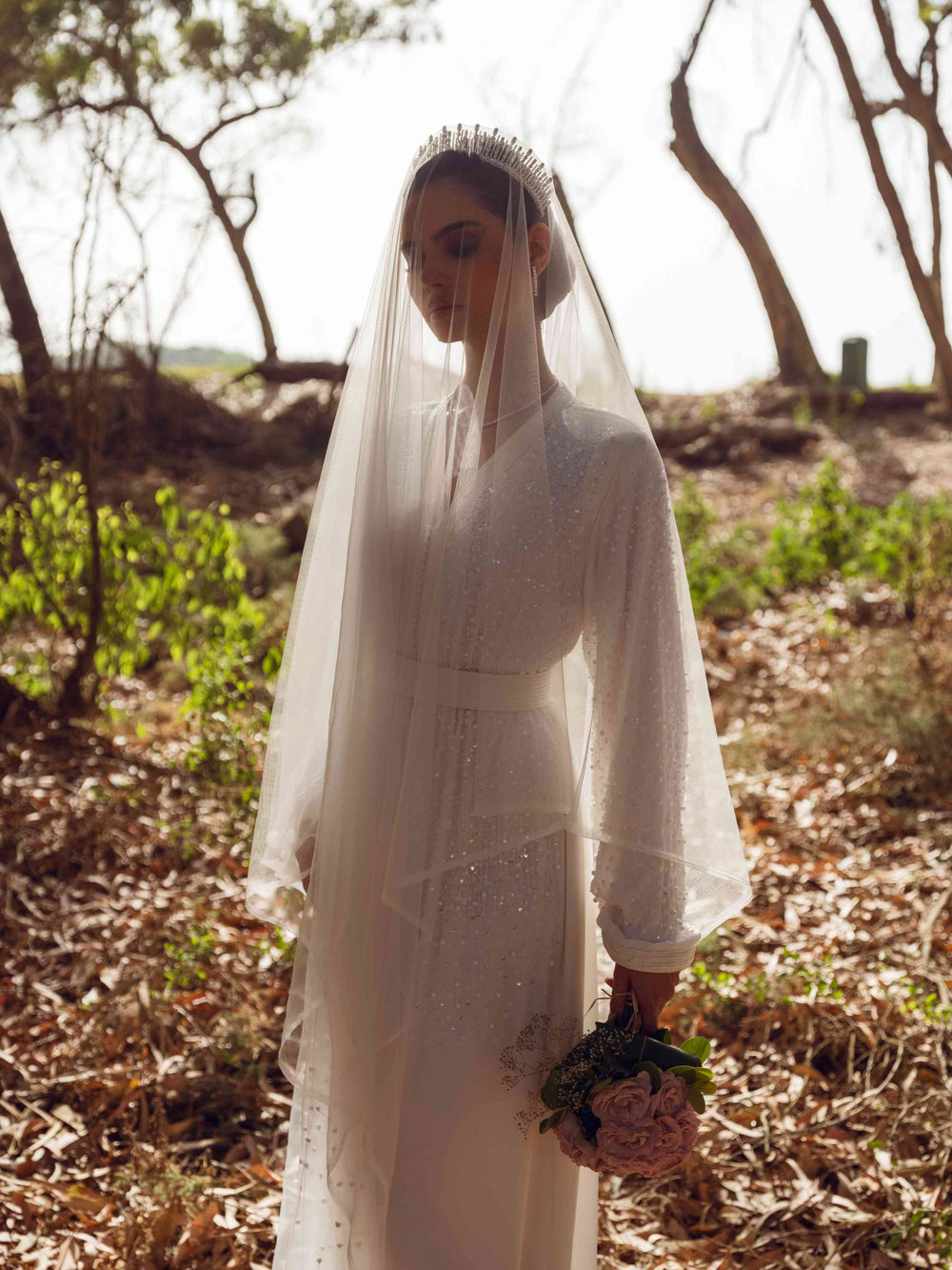 Pensé pour une mariée raffinée, en quête de simplicité précieuse, Najwa incarne une féminité sereine, minimaliste et profondément élégante.
